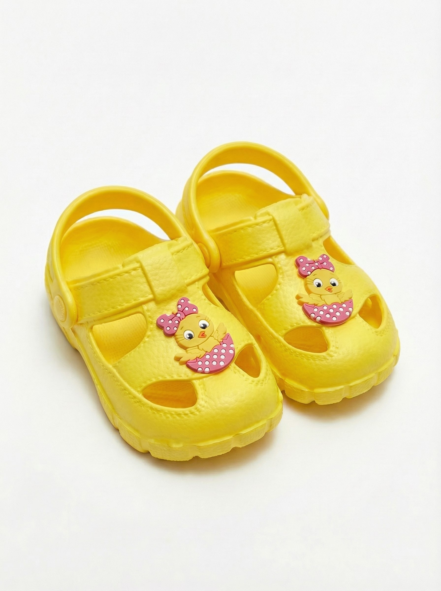 - Модель пляжных сабо оснащена множеством вентилирующих отверстий, что предотвращает от потения, а закрытый носик защищает ножку ребенка от травм.