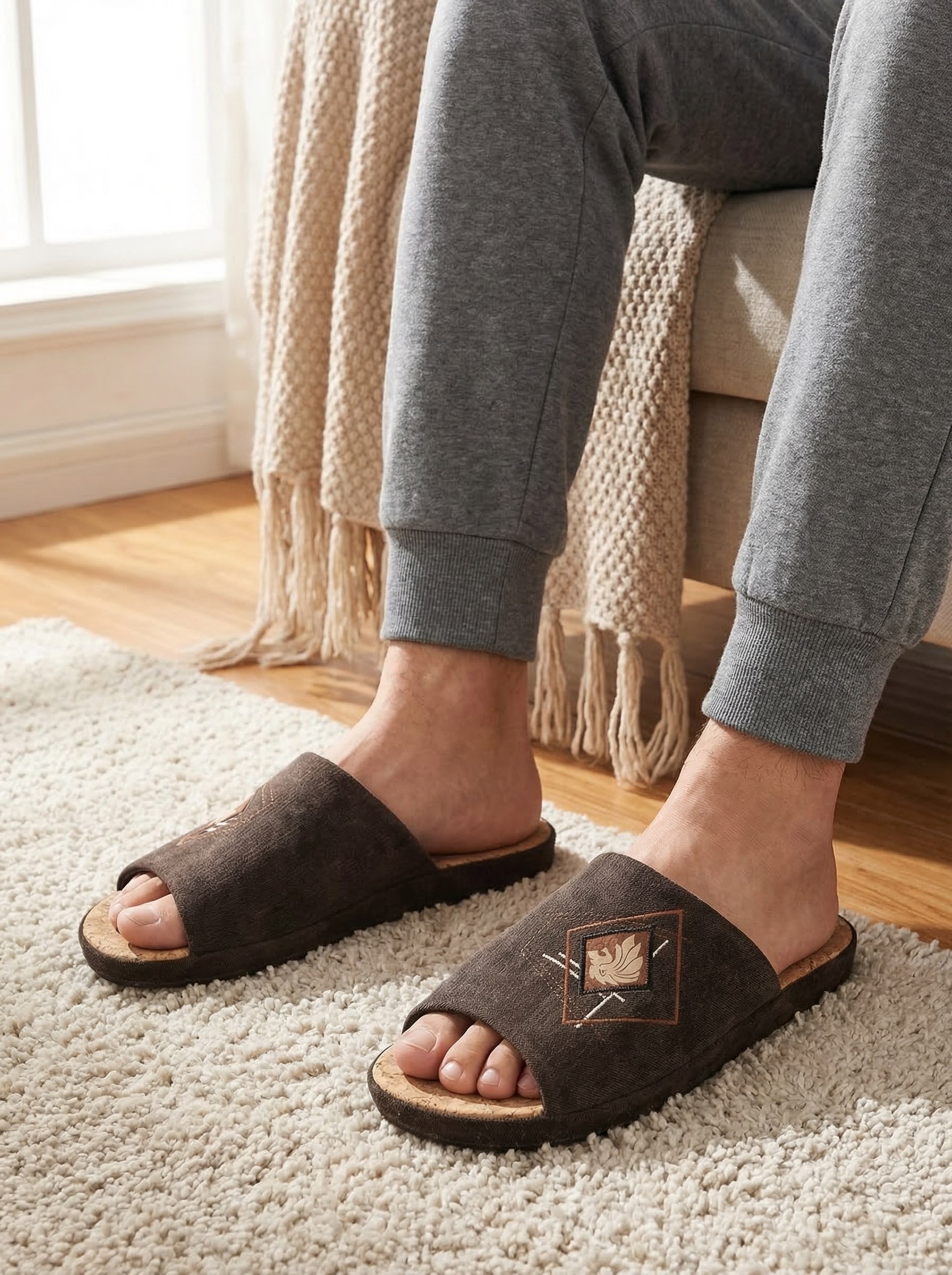 Пробковая стелька обеспечит вашим ногам комфорт в любое время года. А удобная платформа с анатомической подошвой поможет снять усталость после долгого рабочего дня или прогулки. Тапочки идеально подходят для домашнего уютного комфорта.